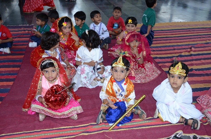 3. Krishna Janmasthami: Krishna Janmasthami was celebrated on 16th Aug 2025 in our school with great pomps and festivity by our Nursery and Kindergarten students. Children came dressed in ethnic wear as lord Krishna & Radha. The Matkis of Radha were painted and decorated it with glitters and stickers. The Incharge teacher spoke about the importance of this festival which depicts the birth of Lord Krishna with message of victory over evil